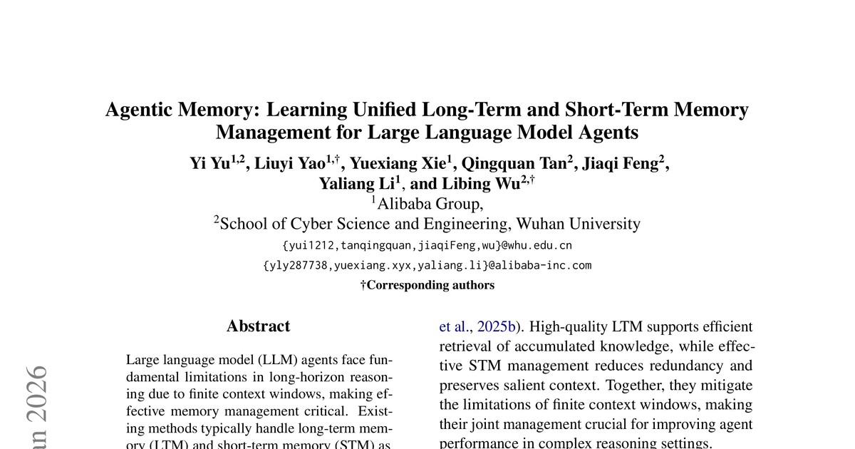 ![[논문 리뷰] Agentic Memory: Learning Unified Long-Term and Short-Term Memory Management for Large Language Model Agents](/assets/images/blog/20260115-paper-2601-01885-agentic-memory-learning-unifie.jpg)