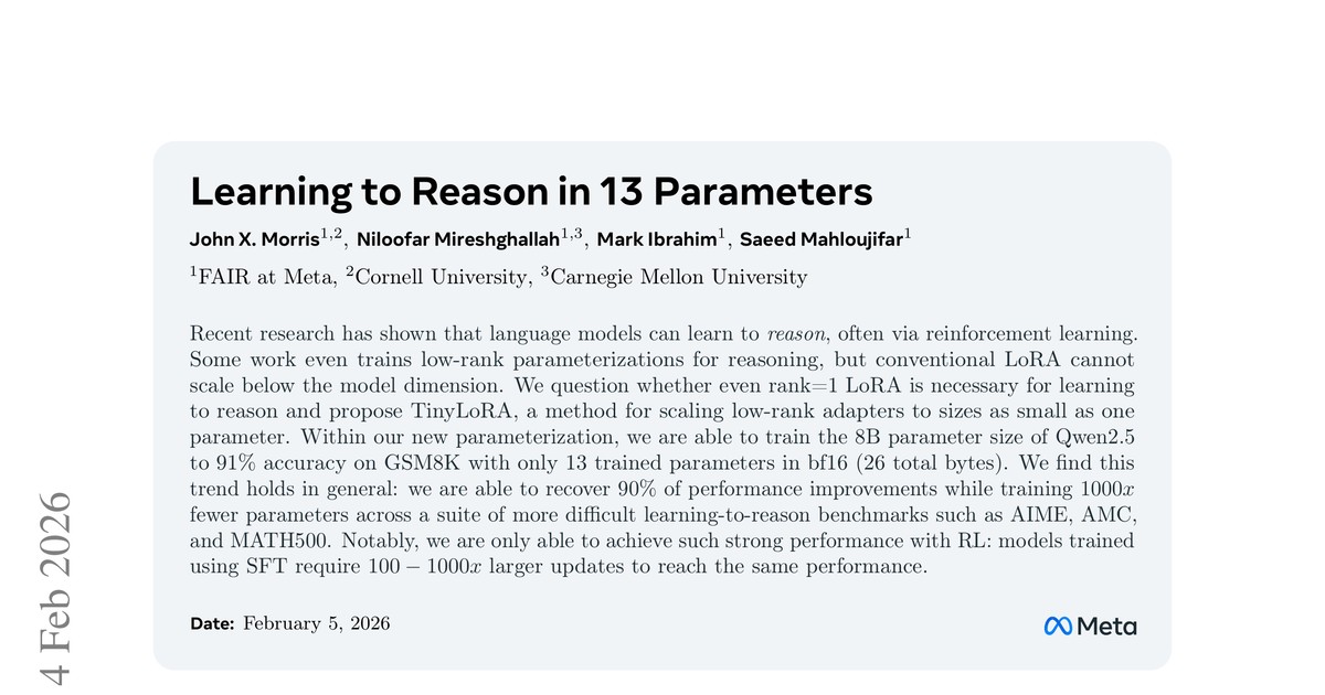 - 논문 원문: Learning to Reason in 13 Parameters (arXiv:2405.04118)