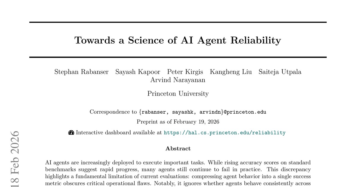 AI 에이전트의 성능은 단순 정확도를 넘어 '신뢰성'을 확보해야 합니다. 이 논문은 AI 에이전트의 신뢰성을 **일관성(Consistency), 강건성(Robustness), 예측 가능성(Predictability), 안전성(Safety)**이라는 네 가지 차원으로 측정하는 포괄적인 평가 프레임워크를 제안합니다. 14개의 최신 AI 모델을 대상으로 한 실험 결과, 모델의 정확도는 꾸준히 향상되었지만 신뢰성의 여러 측면에서는 여전히 큰 개선이 필요함을 보여줍니다. 본 연구는 실제 환경에서 AI 시스템의 잠재적 위험을 줄이고 안정적인 운영을 위한 중요한 과학적 기반을 제공합니다.